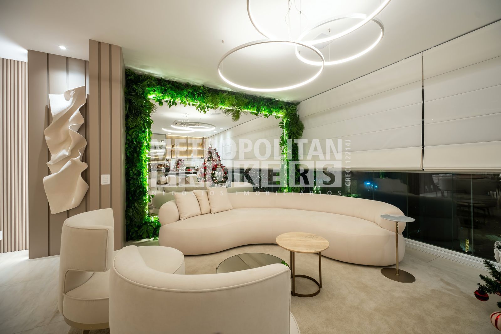 Características do Imóvel Living espaçoso e integrado em múltiplos ambientes, com excelente iluminação natural e ventilação cruzada. Piso em porcelanato de alto padrão e decoração sofisticada.