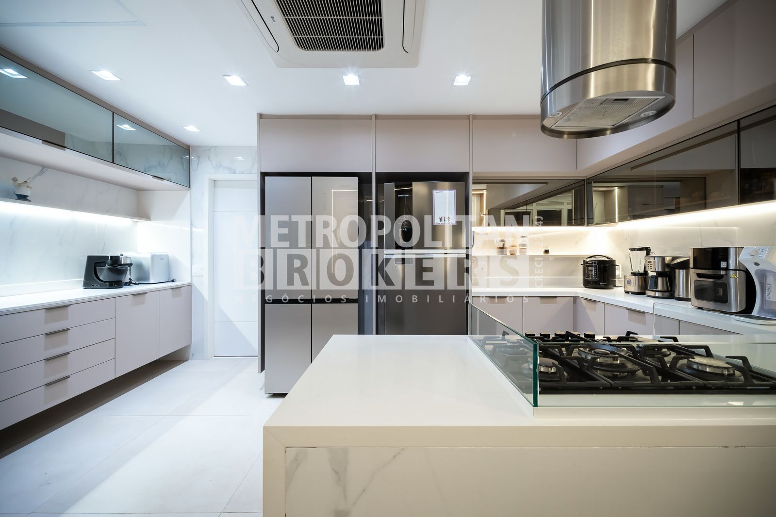 Copa-cozinha moderna, equipada com eletrodomésticos de alta qualidade e armários planejados.